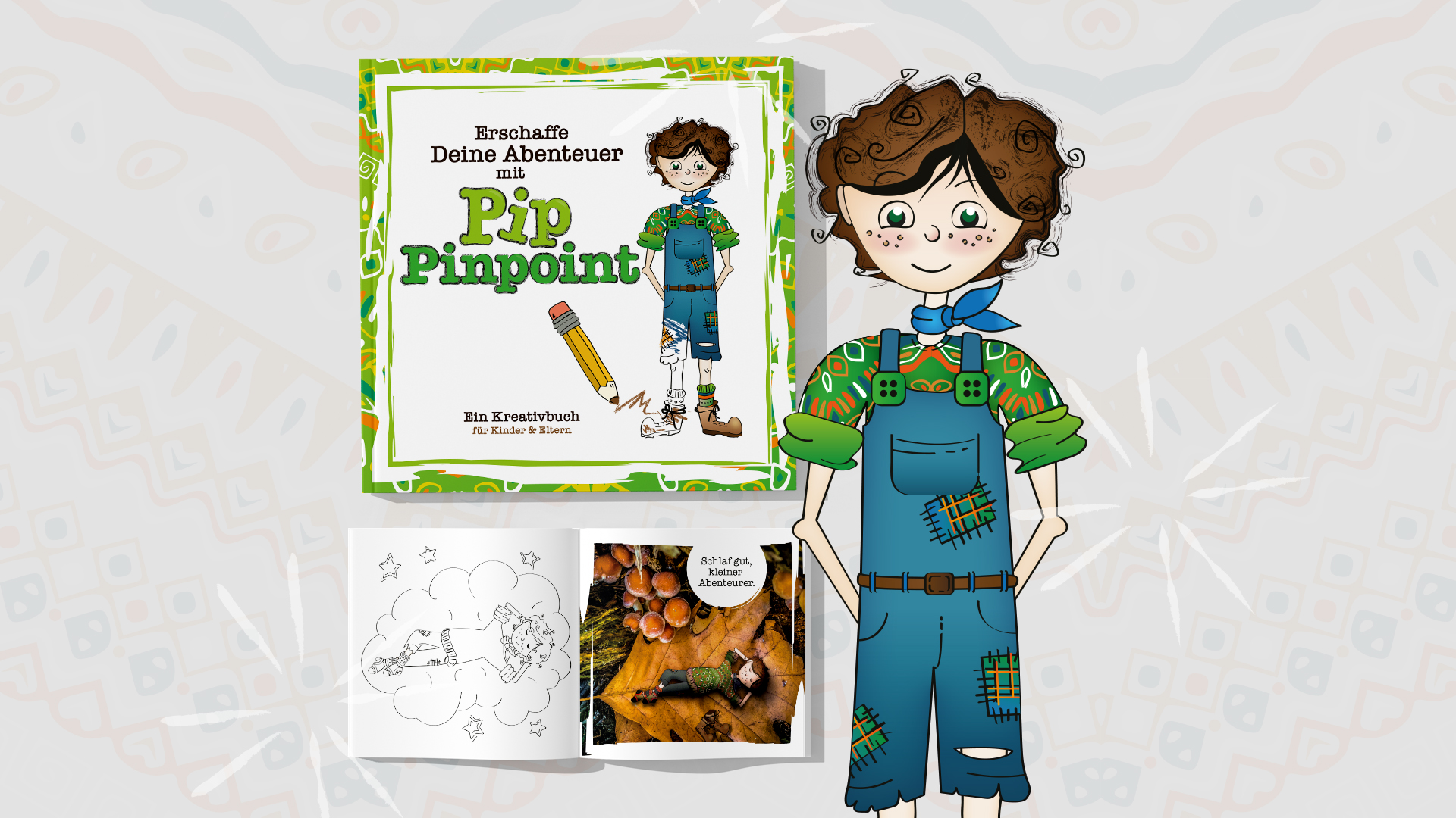 Pip Pinpoint© ist der kleine Weltenbummler, der mit Liebe und Leichtigkeit, voller optimistischer Begeisterung und frohen Mutes durch Wald und Wiesen streift.
